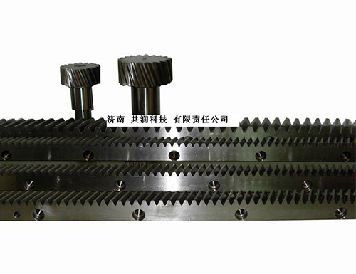 齒條是與齒輪相配的一種條形零件。它等于直徑無限大的一個齒輪周緣的一段。一邊均勻分布著許多齒,與齒輪相嚙合,將轉動變為移動,或將移動變為轉動。齒條是長條形,一側有齒,可認為是一個直徑無窮大的齒輪上的一段。